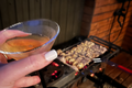Зона отдыха с бассейном 300/200/80, мангалом, казаном, костровой чашей, столиком и шезлонгами.