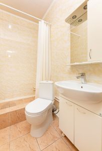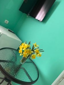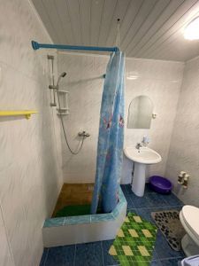 Перед входом на улице две стиральных машины и к ним всякие порошки. В коридоре между номерами ( их 2 на площадке) полный комплект хозяйственных принадлежностей - тазики, тряпочки, туалетная бумага, утюг, гладильная доска, швабры, щетки, моющие средства и ещё много всего, что может понадобиться. Даже аптечка. А ещё 20-литровая бутыль с питьевой водой.