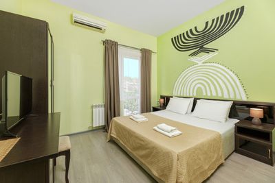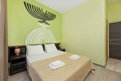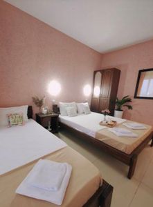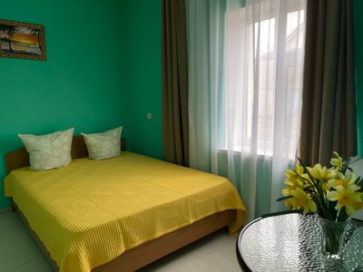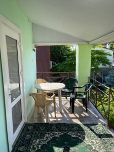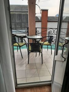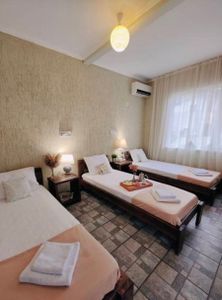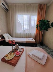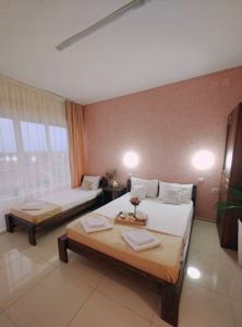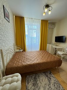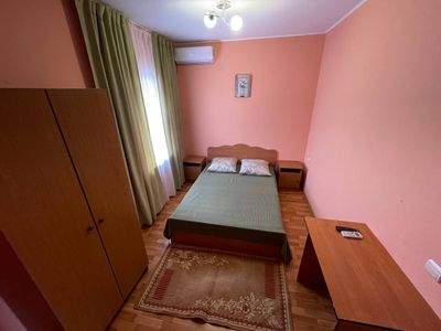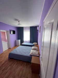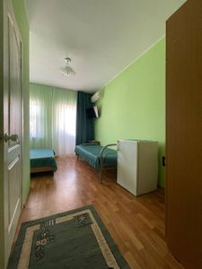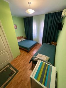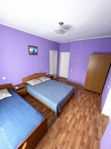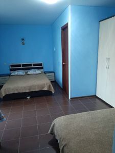 Понравилось всё. Сравнить есть с чем. Хозяин на связи. Всё оперативно и понятно. Приятный в общении. Парковка есть - перед калиткой. Номер отличный, капитальный, с хорошим ремонтом и мебелью. Санузел совмещённый, просторный. Вода холодная и горячая хорошо регулируются с нормальным напором. Спальни две. В одной двуспальная кровать реально широкая, так что мелкий спал между нами поперек:) , ещё раскладной диван. Постельное бельё качественное х/б. Матрас средней жёсткости - спать хорошо. Комод, две тумбочки, вешалка. При всем этом , в комнате не тесно. Выход на балкон, где есть столик и стулья и сушилка для белья.