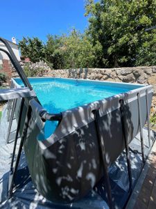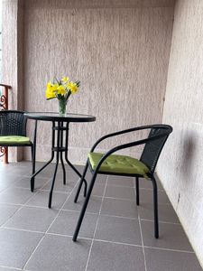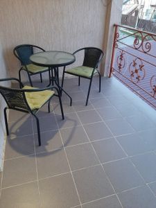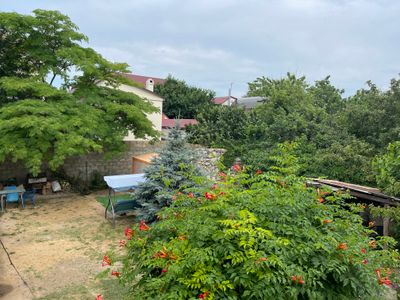 У калитки есть кран для мытья ног от песка после моря. Удобно. Тем более со стулом.