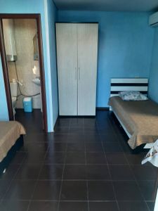 Вторая спальня имеет две односпальные кровати и , что очень удачно, столик вроде парты , нашим детям как раз учить уроки и заниматься онлайн английским по вечерам.