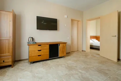 Не хватало морозильной камеры в холодильнике (чтобы заморозить хладогенты для сумки-холодильника), кипяченой воды (на этаже есть кулер, но чтобы заварить чай ходили в соседнюю столовую с термосом за кипятком). Номер рассчитан на двоих, но из сидячих мест только одно кресло в комнате и на балконе нет стульев. Также очень не хватало полочки в душе.